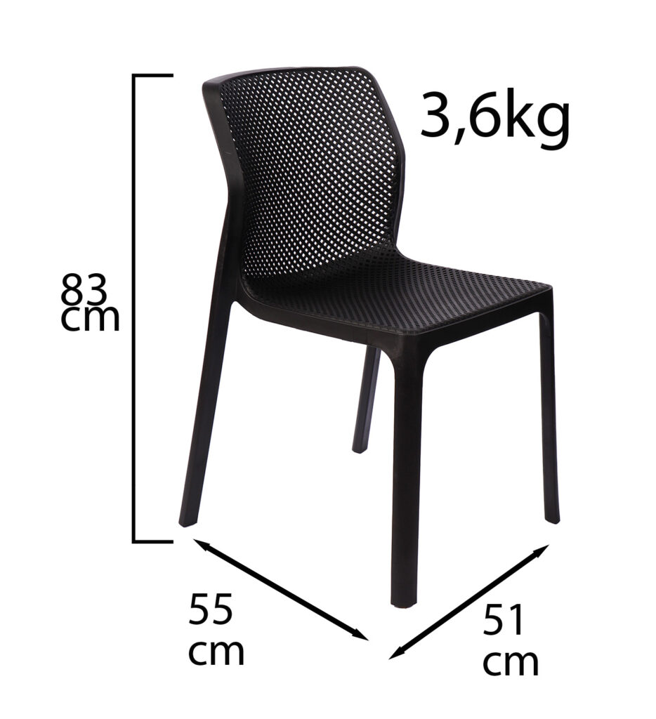 Seu assento anatômico e encosto vazado proporcionam ventilação e bem-estar durante o uso, enquanto o design leve e empilhável garante praticidade no dia a dia.