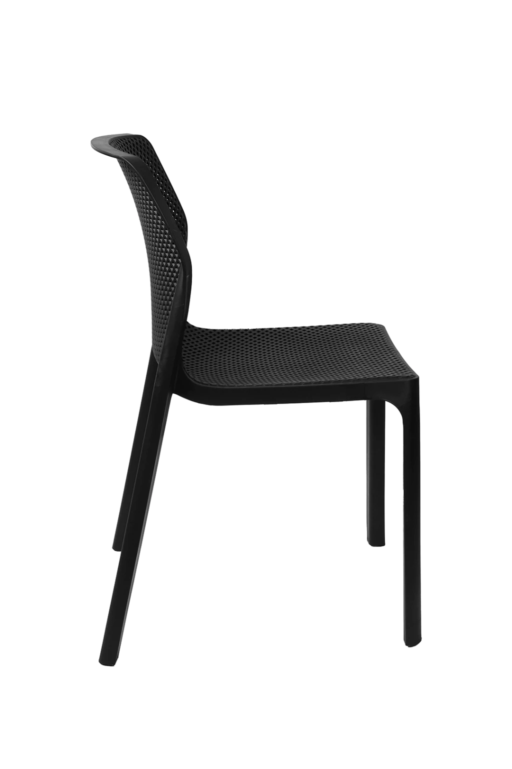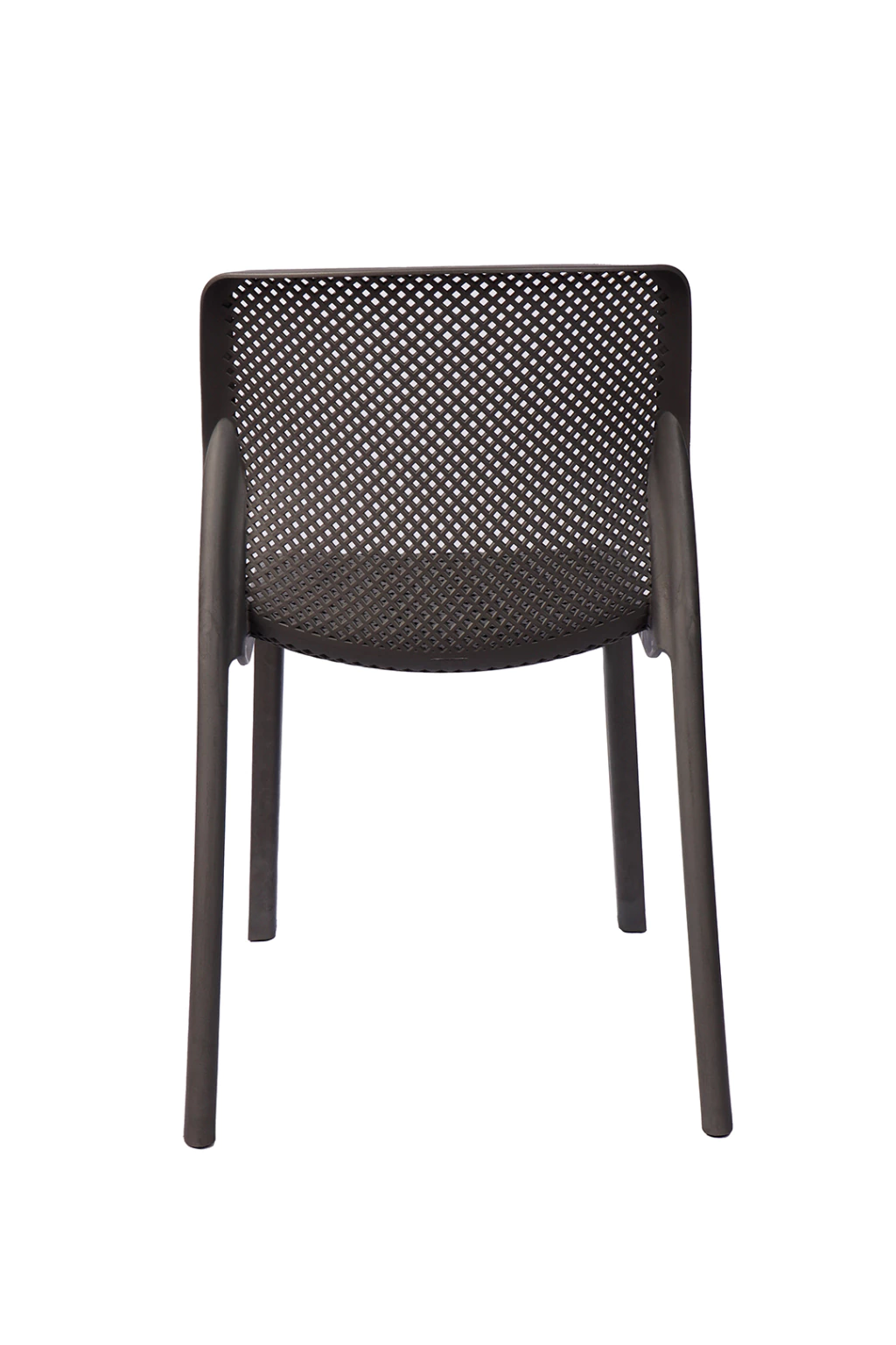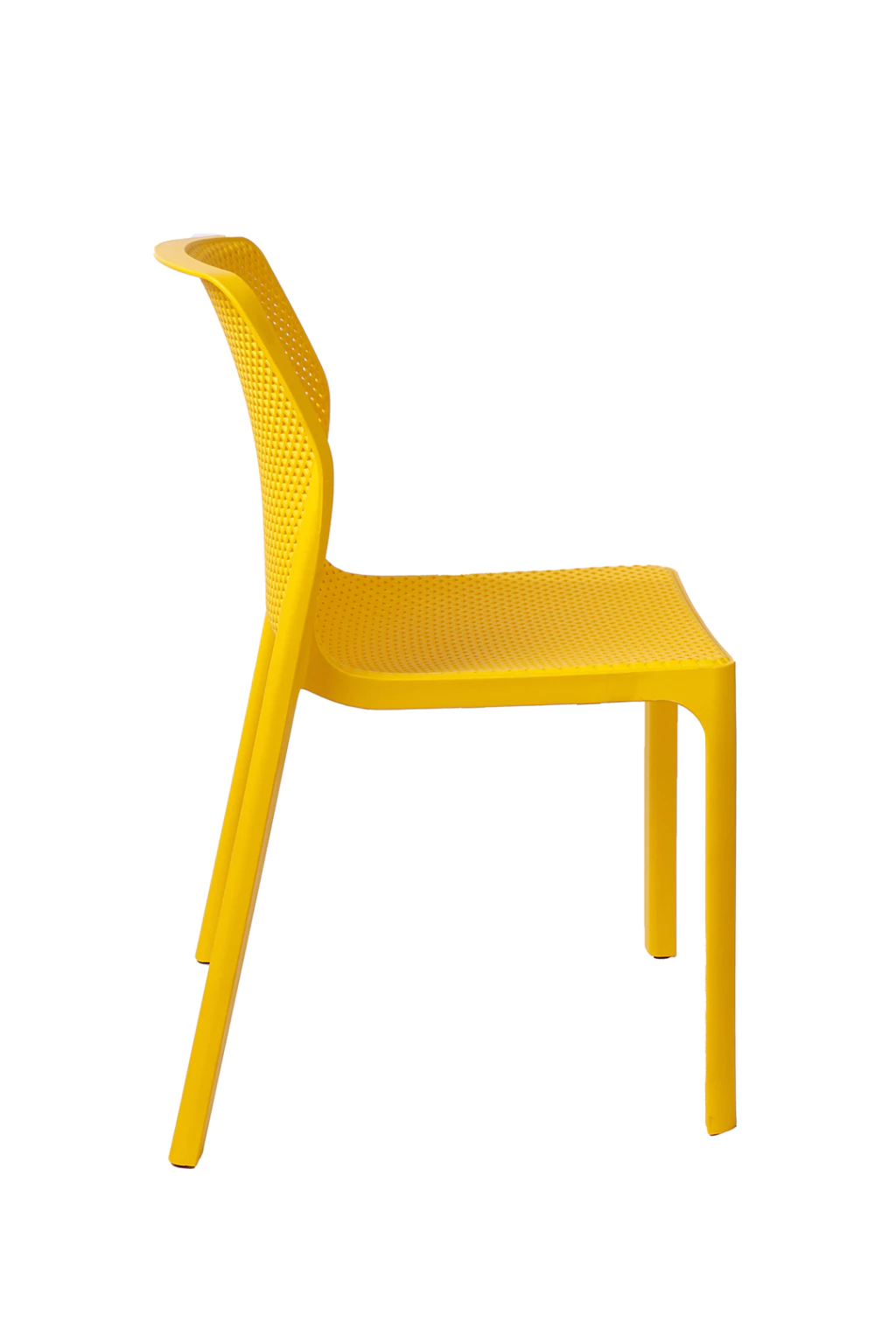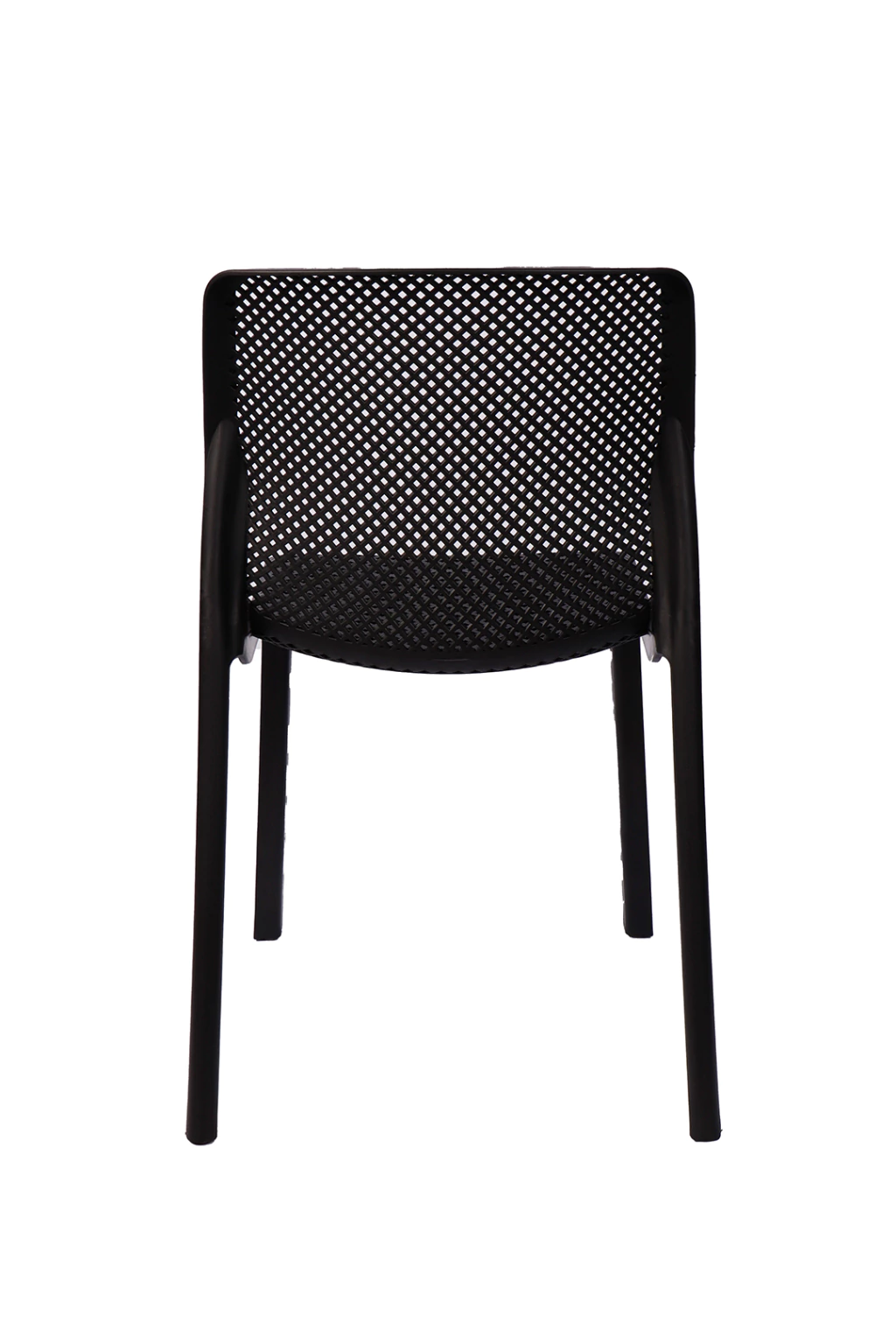 Design italiano contemporâneo, encosto vazado ergonômico e empilhamento prático.