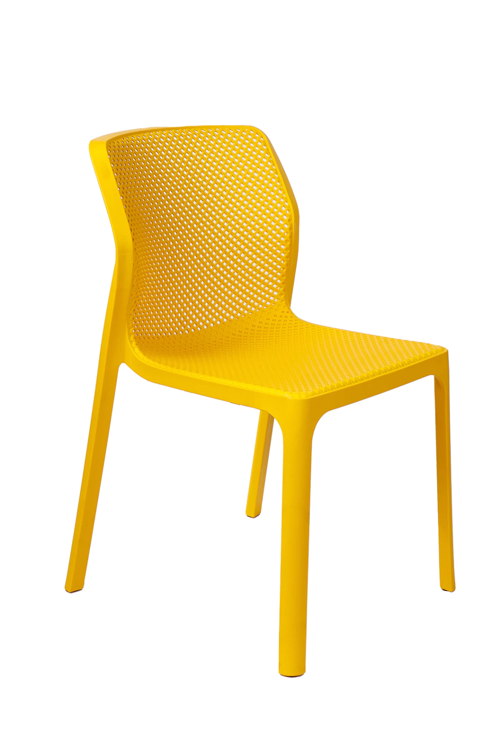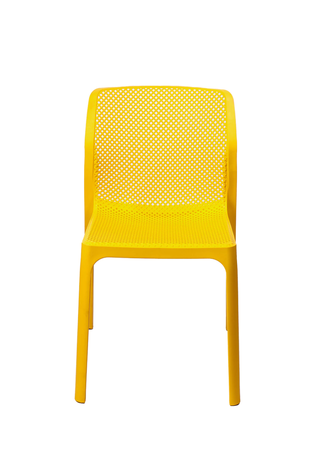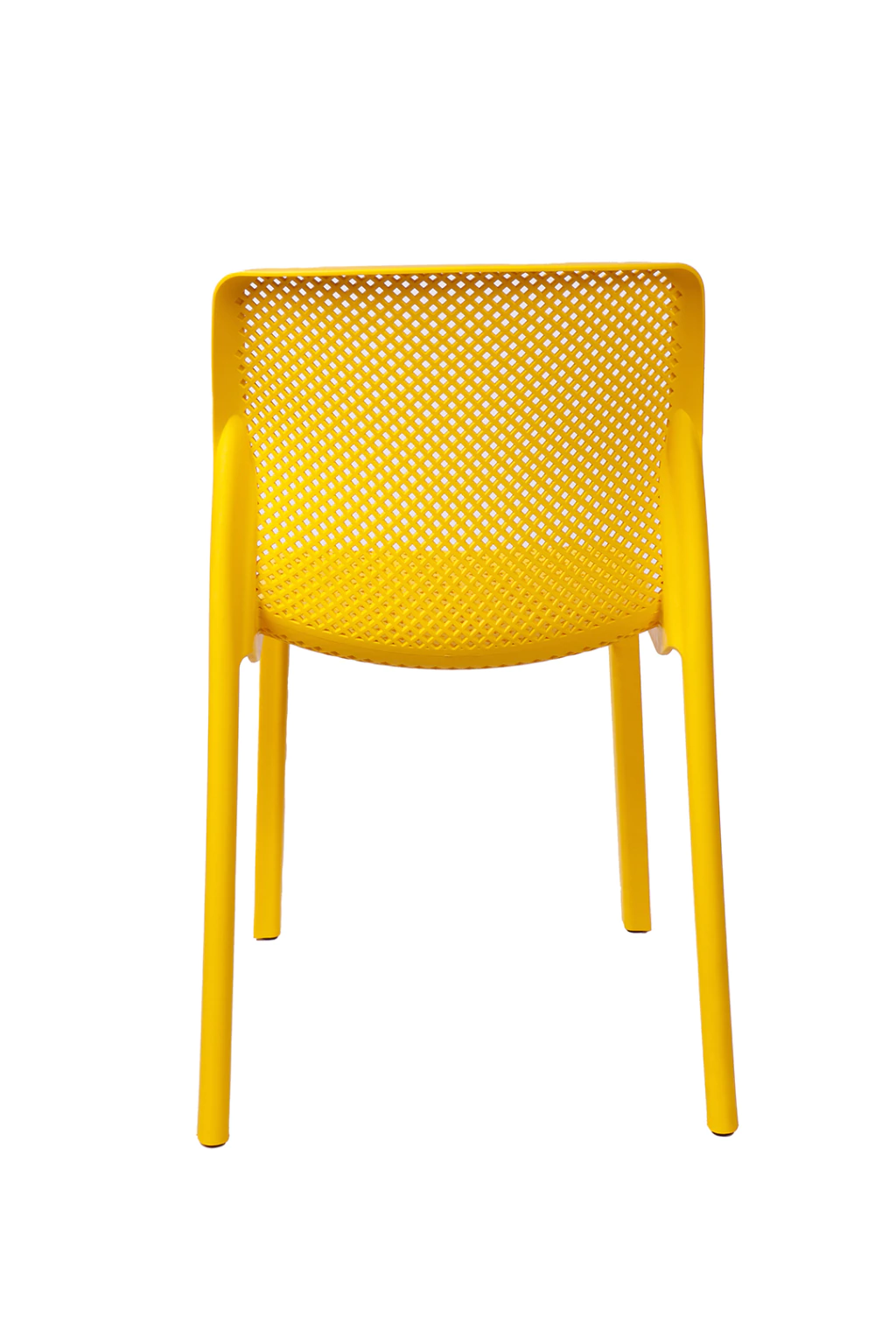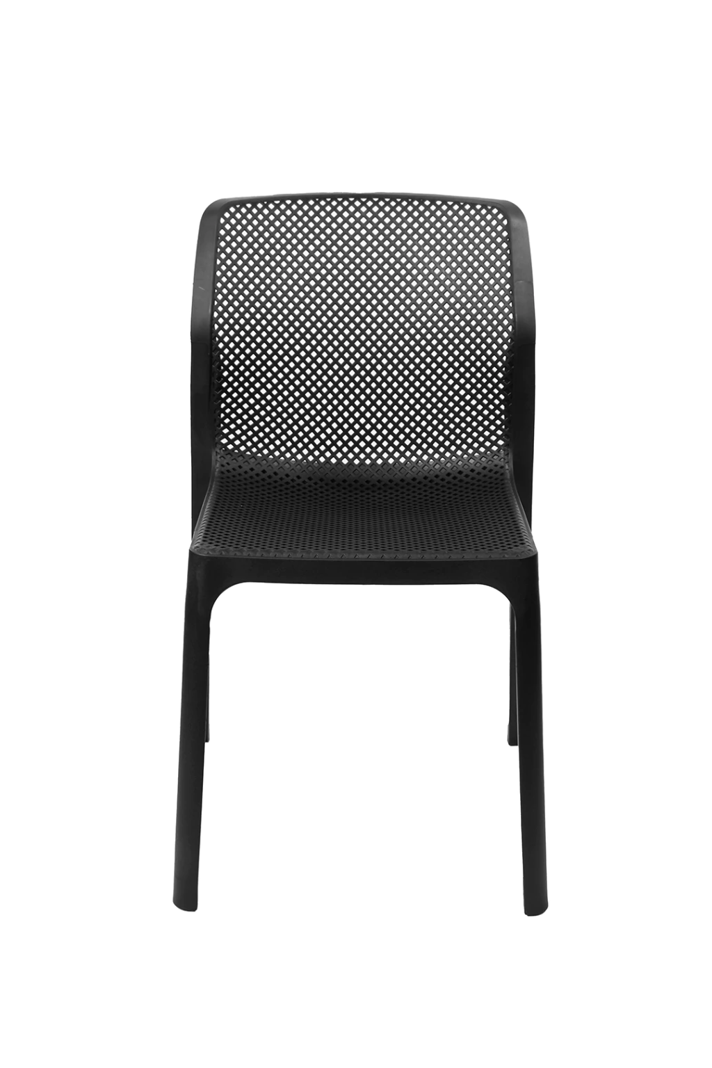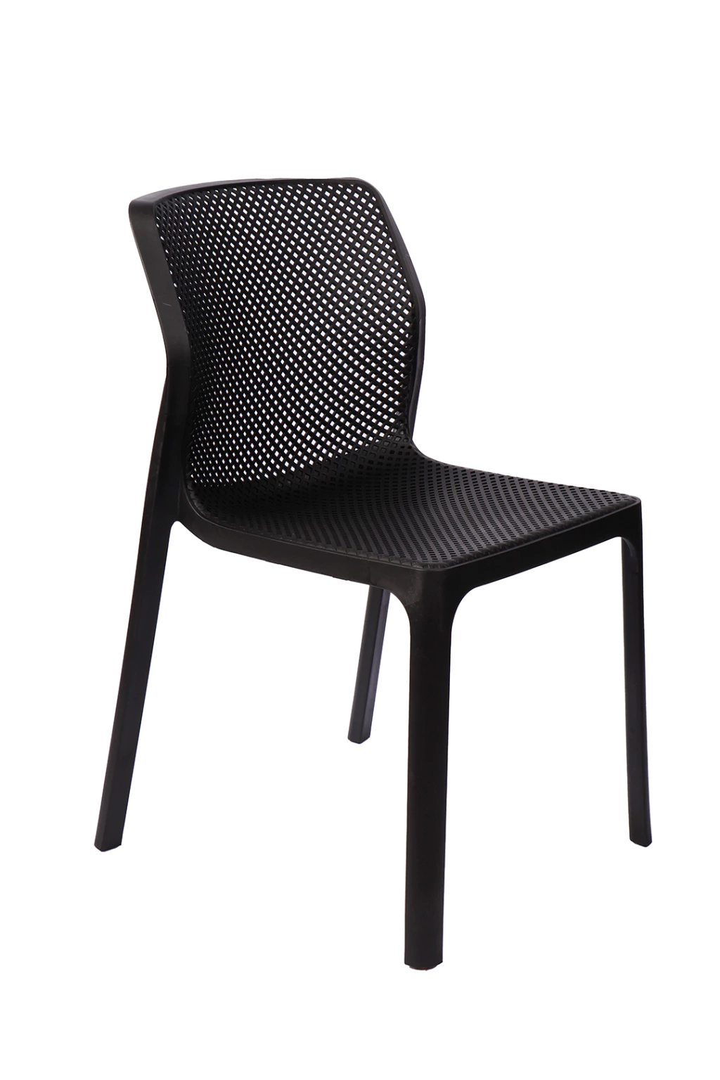 Design italiano contemporâneo, encosto vazado ergonômico e empilhamento prático.