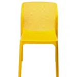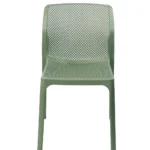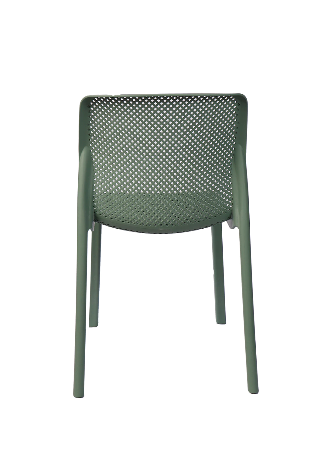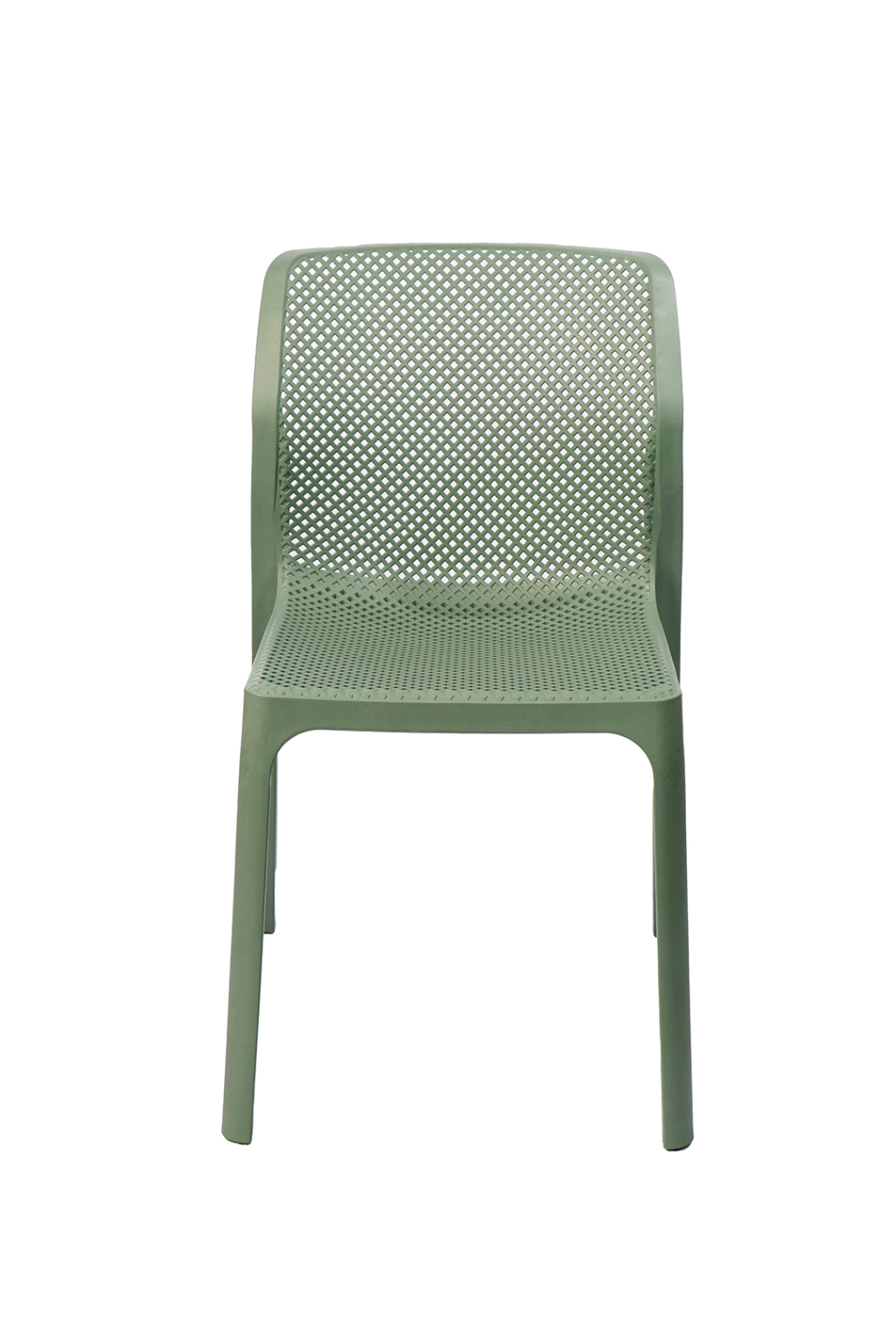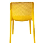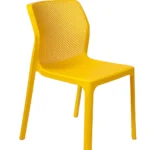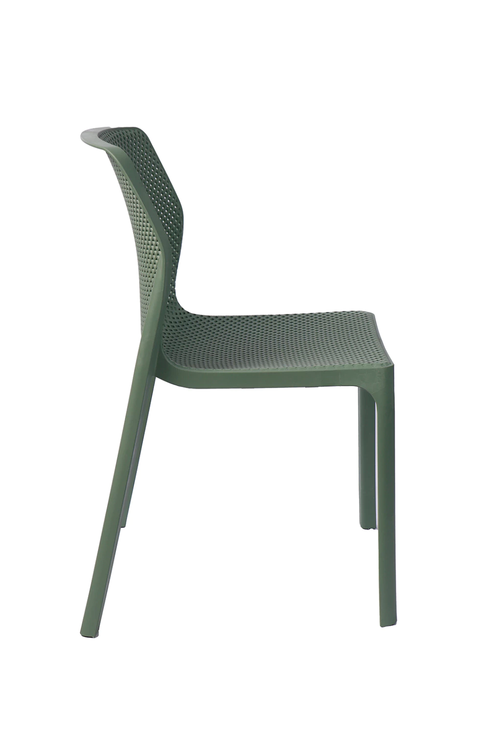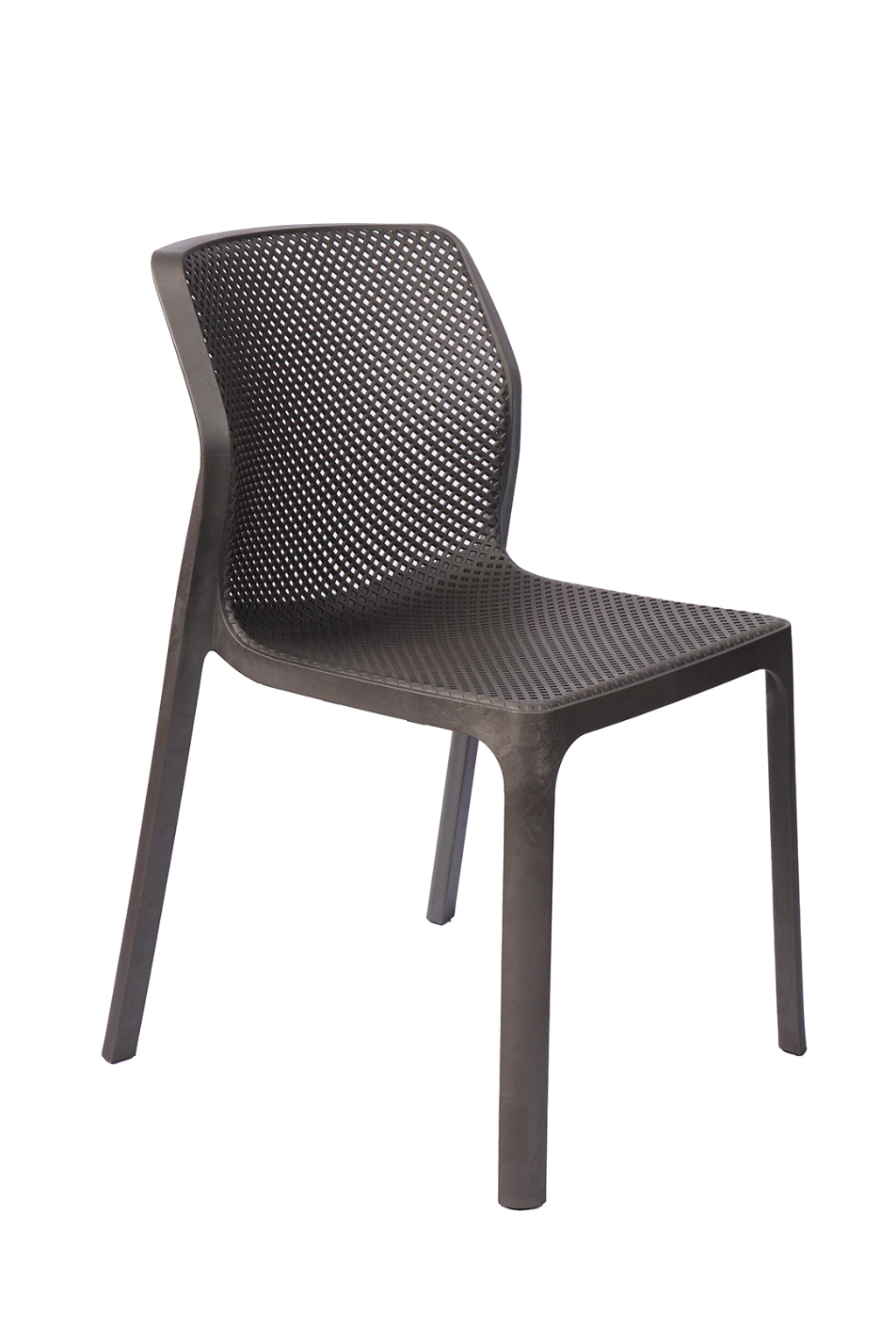 Design italiano contemporâneo, encosto vazado ergonômico e empilhamento prático.